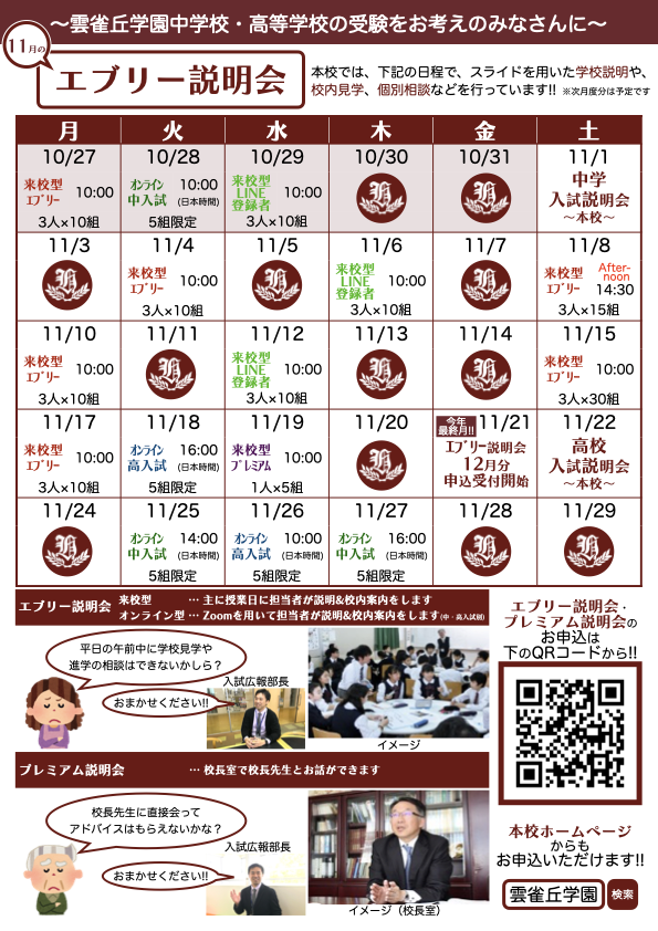ただし、在学する学校が休みの日は、受験生ご本人様もご参加いただけます。