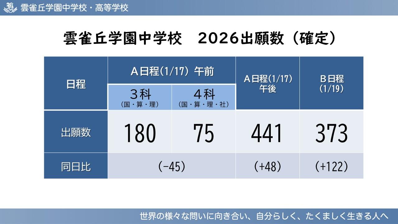 【2026中学入試】出願数情報(確定) および 登校日 日程訂正のお知らせ
