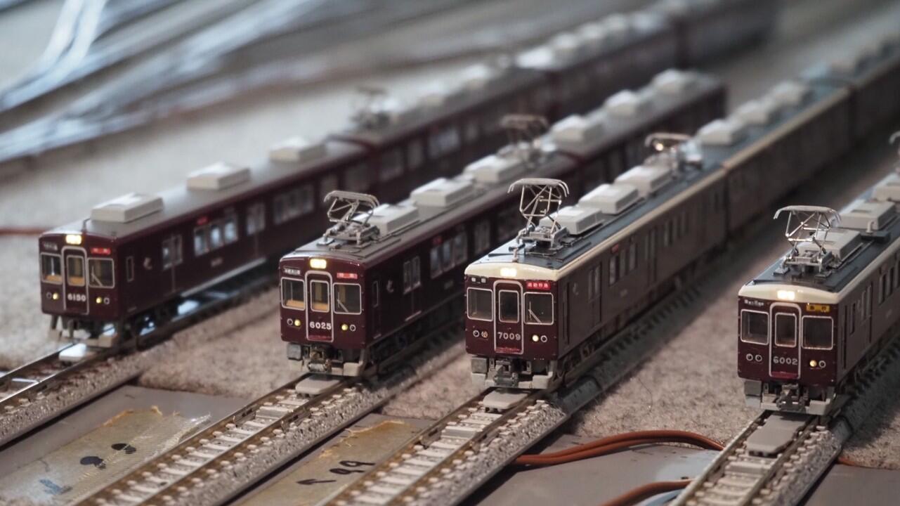 写真右側は、鉄道模型運転会の際の大ボードにある阪急電車Nゲージの車両です。