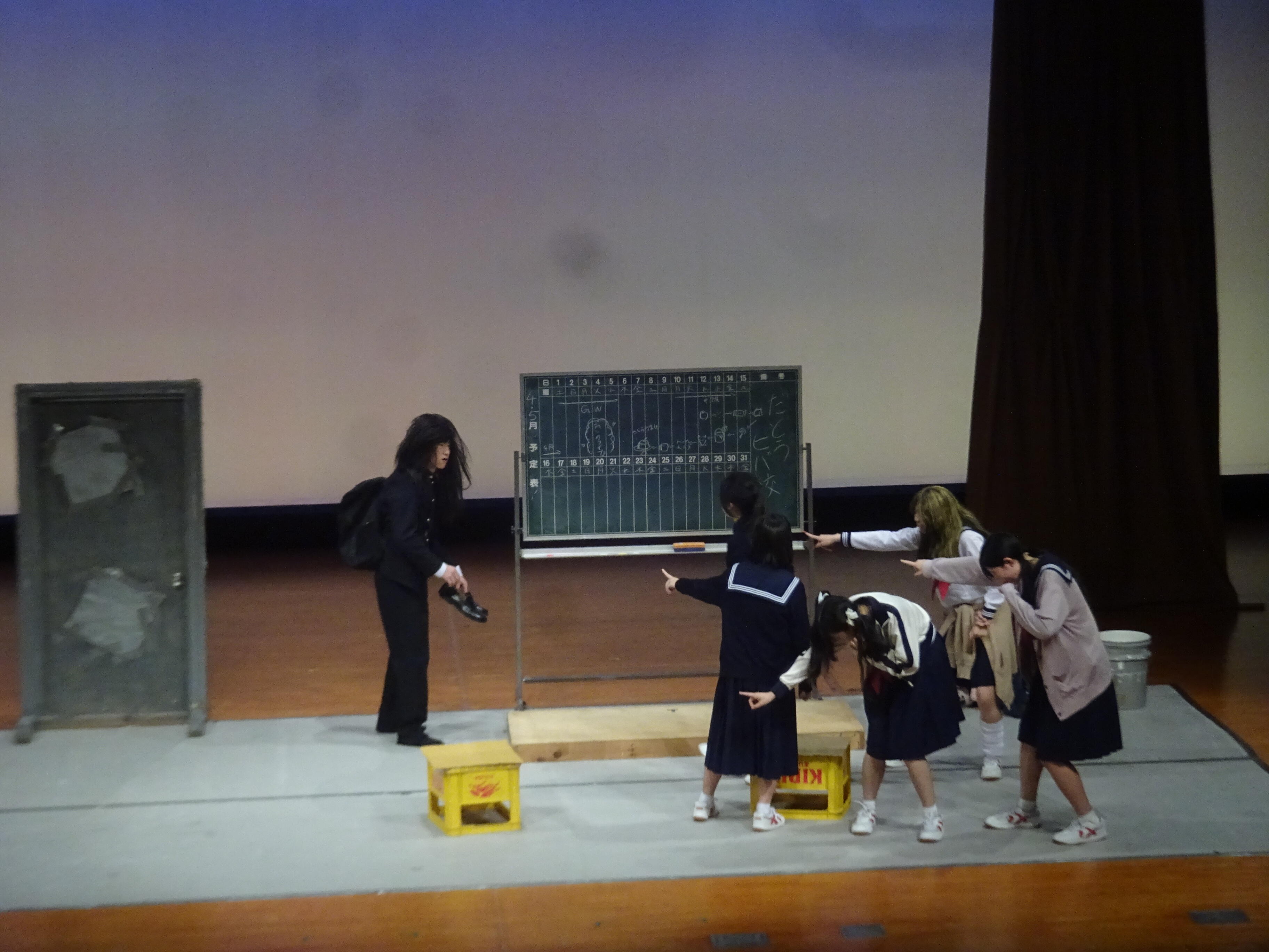メインキャストの2人は高校2年生が務めました。中入生と高入生でしたが、それぞれ今まで雲雀の演劇部で培ったものを表現できていたように思います。ほかのキャストたちも観劇いただいた方のコメントをお借りすると「キャラが立って」いました。照明係と音響係も、もはや手慣れたもので安心感抜群でした。