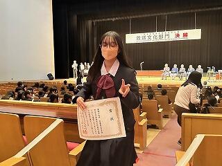 結果、アナウンス小部門で1年生のOさんが銅賞(4位)!来年の全国高総文祭秋田大会に推薦される3位以内には惜しくも届かなかったものの、1年生の中では1番の成績でした。