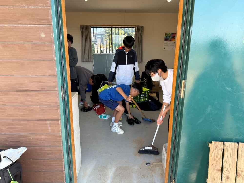 最後の練習は天気も良く、気持ちよく終えることができました。そして、部室の大掃除、クレイコートににがり撒きのお仕事です。こちらもそれぞれ仕事を分担し、一生懸命取り組んでくれました。気持ちよく新年を迎えることができそうです。