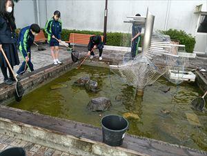 科学部 講堂前池水替え 20260304