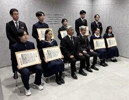 中学、高校それぞれ3点ずつ応募し、中学は入選1点、2点が佳作に、高校は特選1点、入選1点、佳作が1点、そのうち、高校1年生の特選の作品が特別審査員賞を受賞しました。