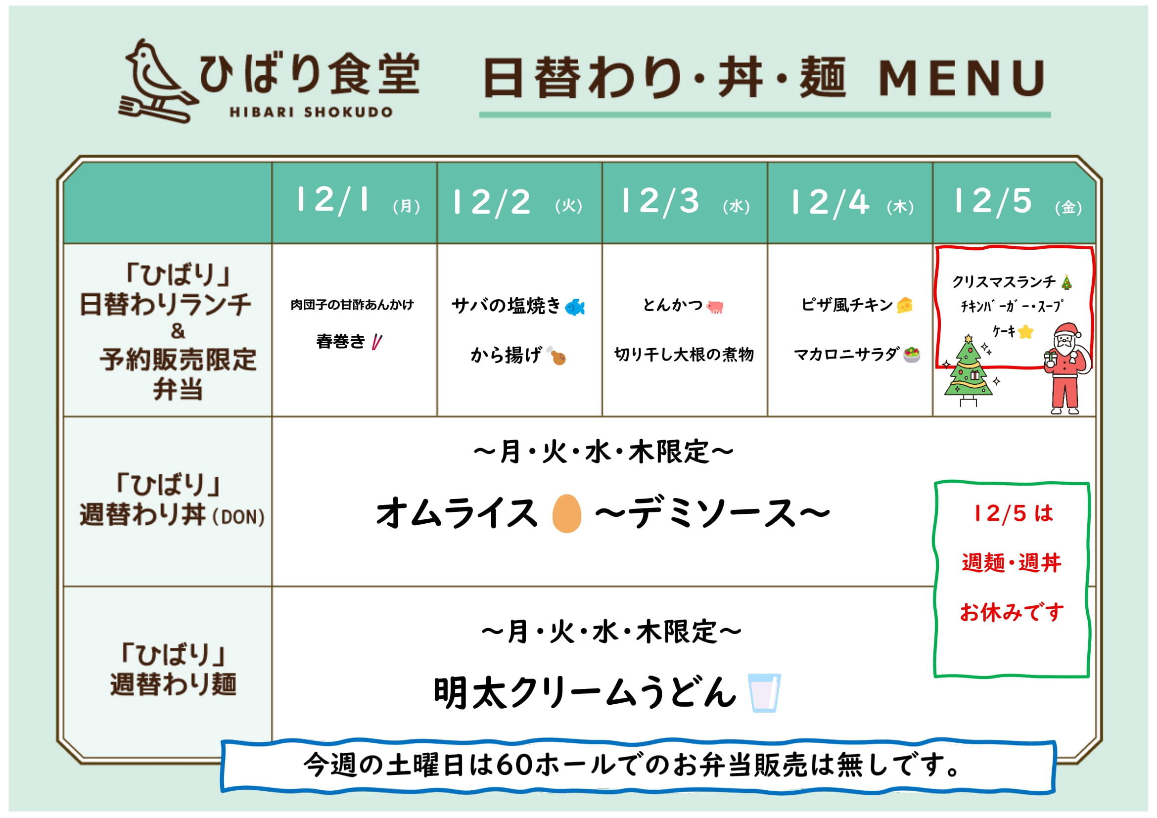 月~金限定のメニュー(日替わり定食500円)・週替わり麺(450円)・丼500円))を紹介します。