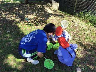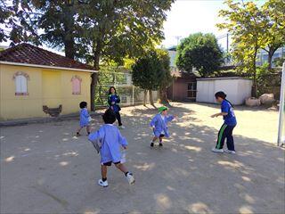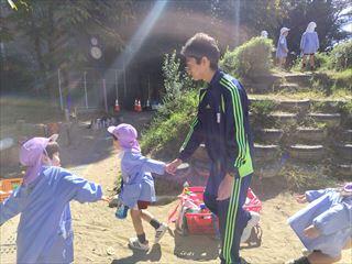 教室での活動後、すぐに園庭に移動し、自分の担当クラスの子たちと思い思いに活動しました。