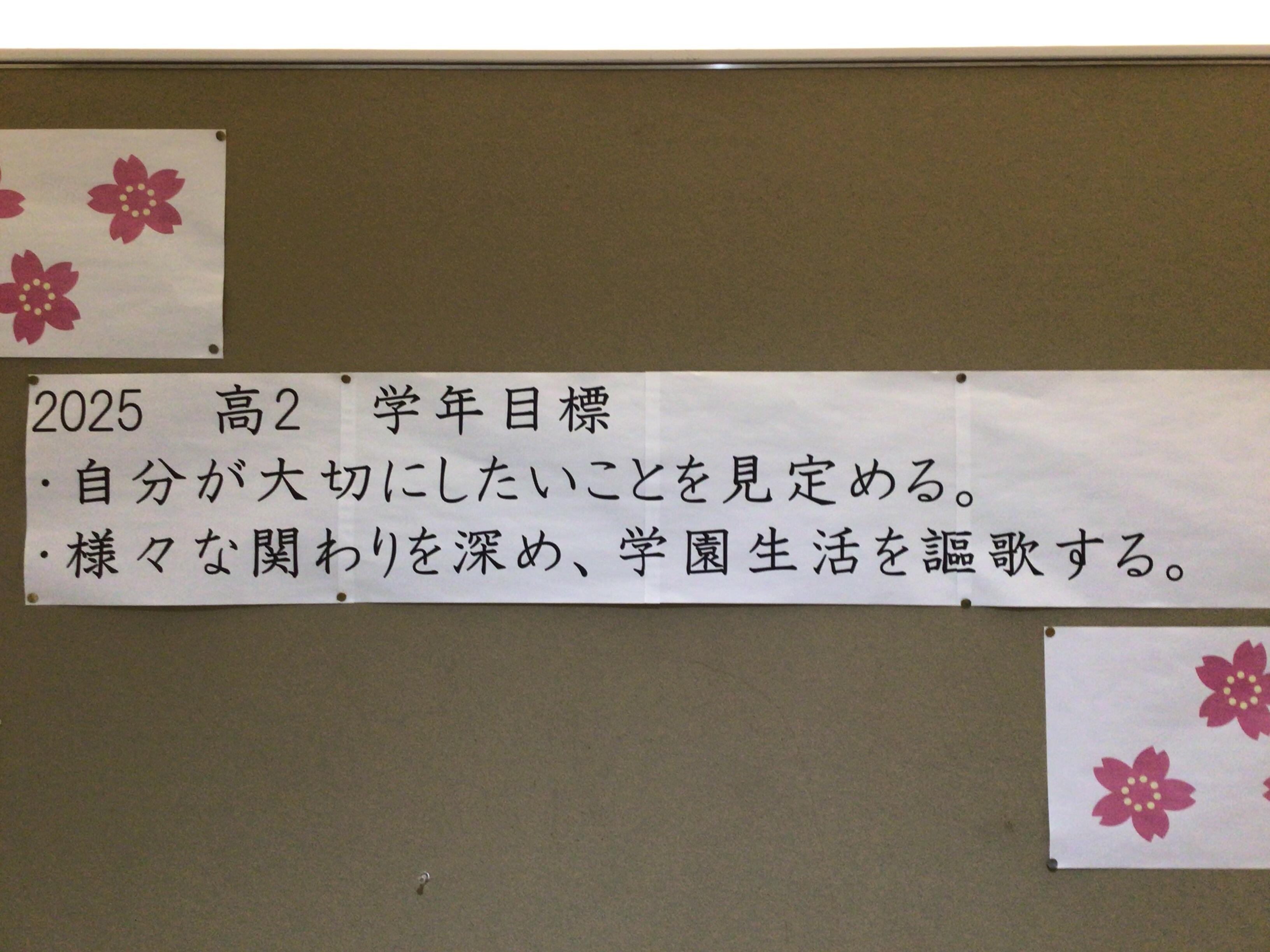 学年フロアの掲示板に貼られている、今年度の学年目標です。