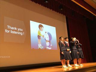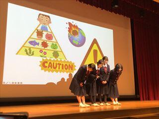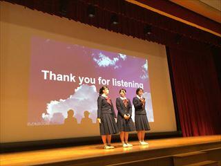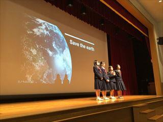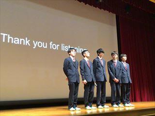 クラスから選出されたグループが、今日、学年全員の前でプレゼンしました。