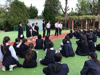 5/14(木)開催予定の高校体育大会に向けて結団式が行われました。縦割りで分けられた各団ごとに集まり、団長・副団長・体育委員が団の前で自己紹介と意気込みを語りました。その後は行進や競技の練習や競技決めなどで大会に向けての気持ちが高まっていくようでした。団長・副団長を中心として高3がリーダーシップを取り、後輩たちを引っ張って体育大会を盛り上げてほしいと思っています。