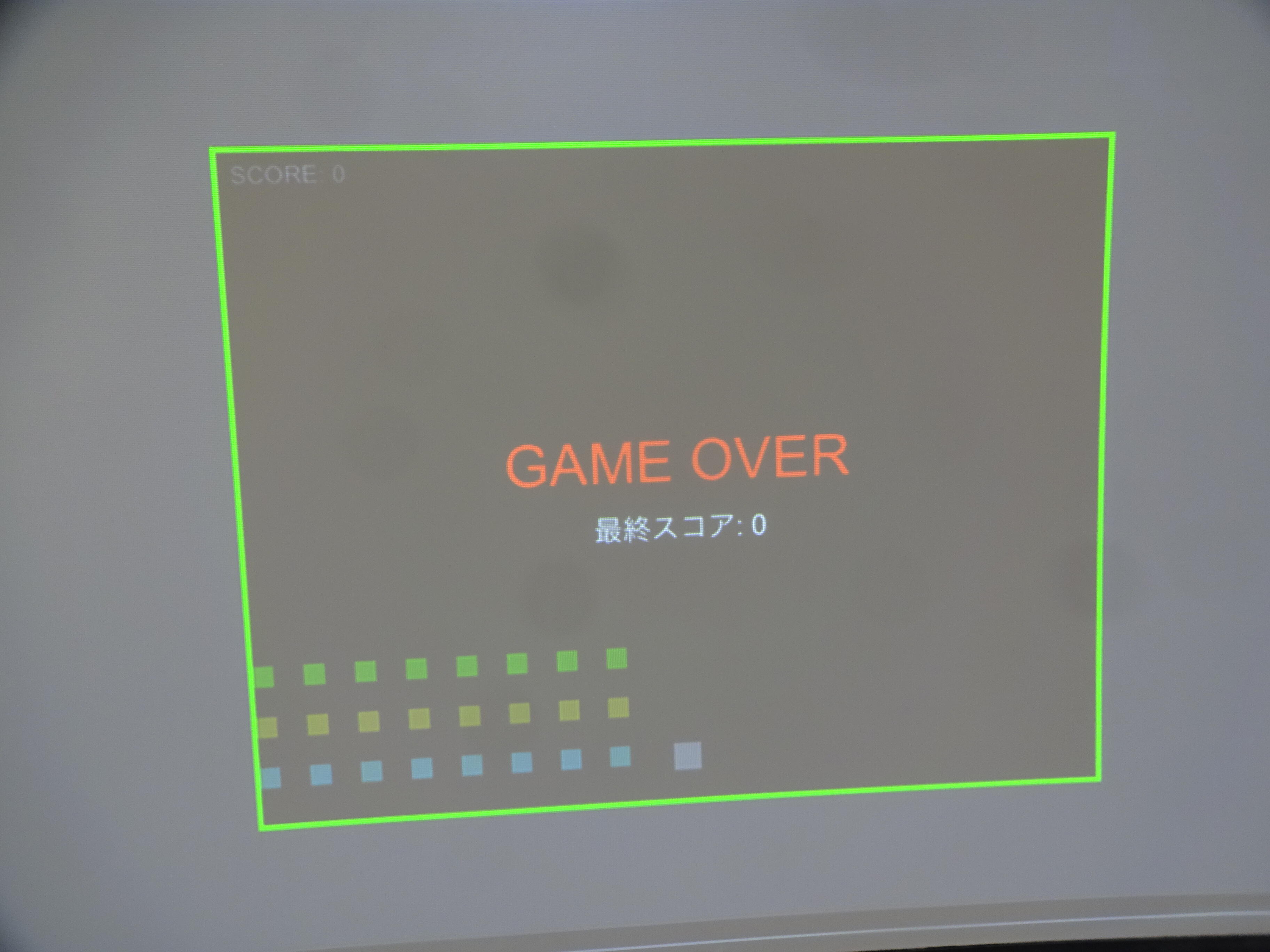 「GAME OVER」の画面は担当の先生が作成したインベーダーゲーム(ただし操作方法不明)