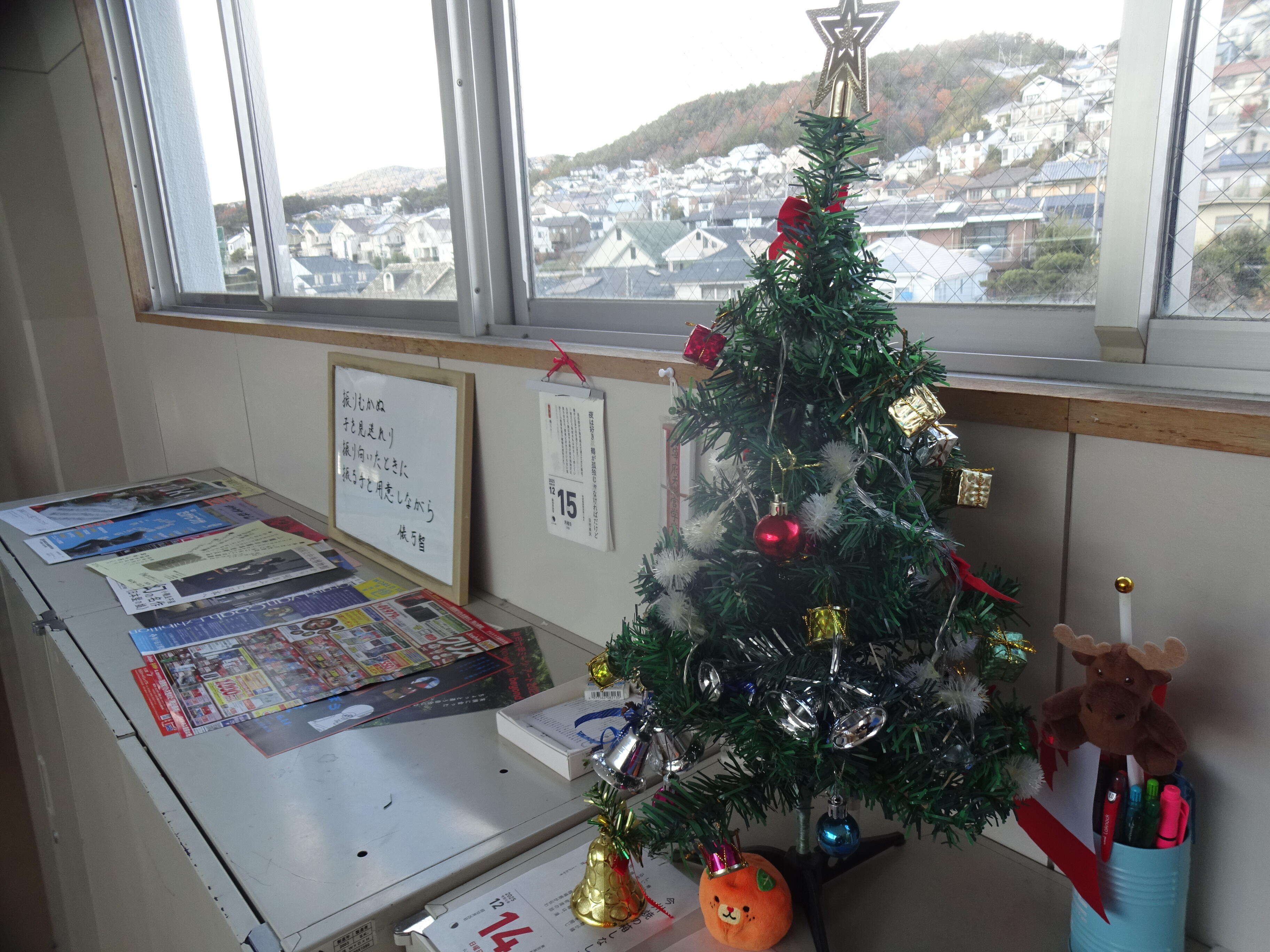 フロアでは一足先にいつもの動画を流しています。クリスマスツリーも出しました。