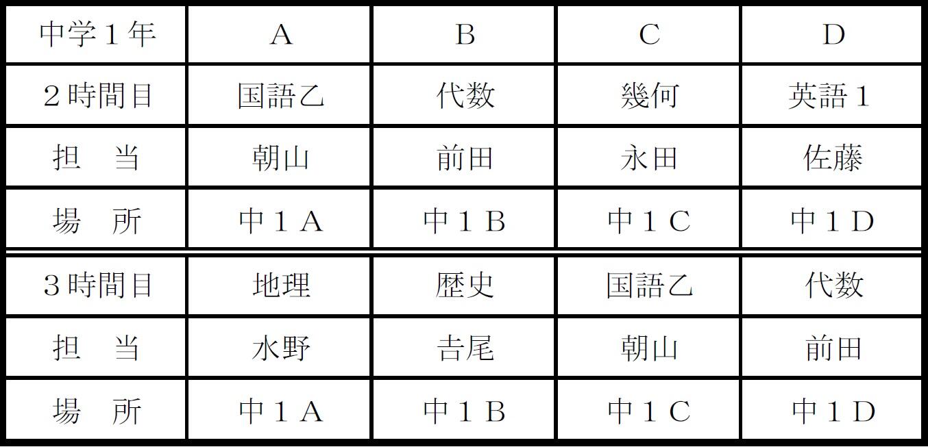 参観日(明日の2・3限)の時間割は下記のようになっています。