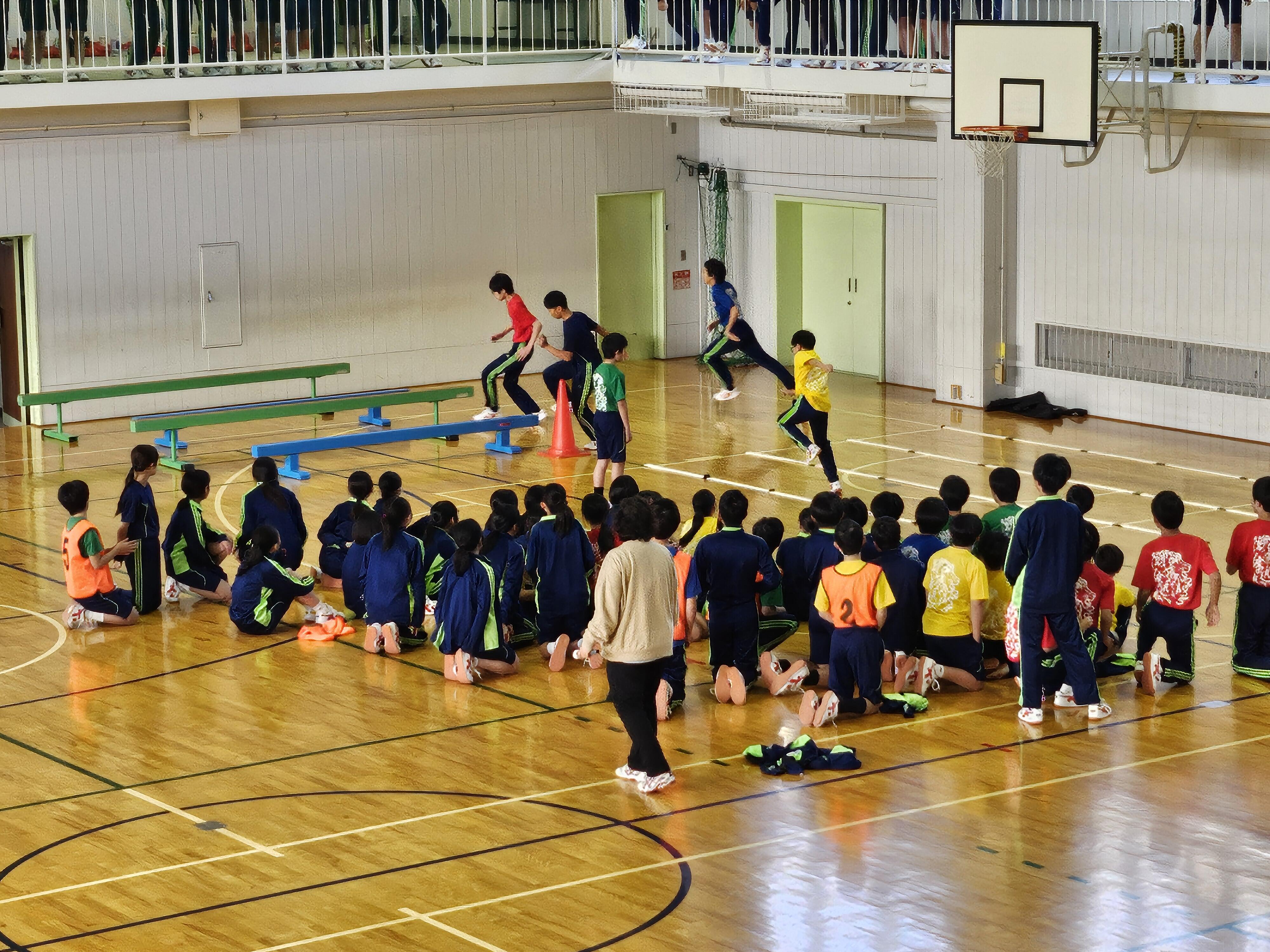 「スポーツ探究」では、クラス対抗で、平均台・跳び箱・マット運動に加え、バスケットのシュートまで盛り込んだコースに挑戦しました。応援の声が飛び交う中、どのレースも手に汗握る展開となりました。この熱戦を陰で支えたのが、体育委員です。ボールや縄跳びを次の選手が来る前にもとに戻したり、審判をしたり、状況を見て、テキパキと動く姿は頼もしく、円滑な大会運営の立役者となってくれました。