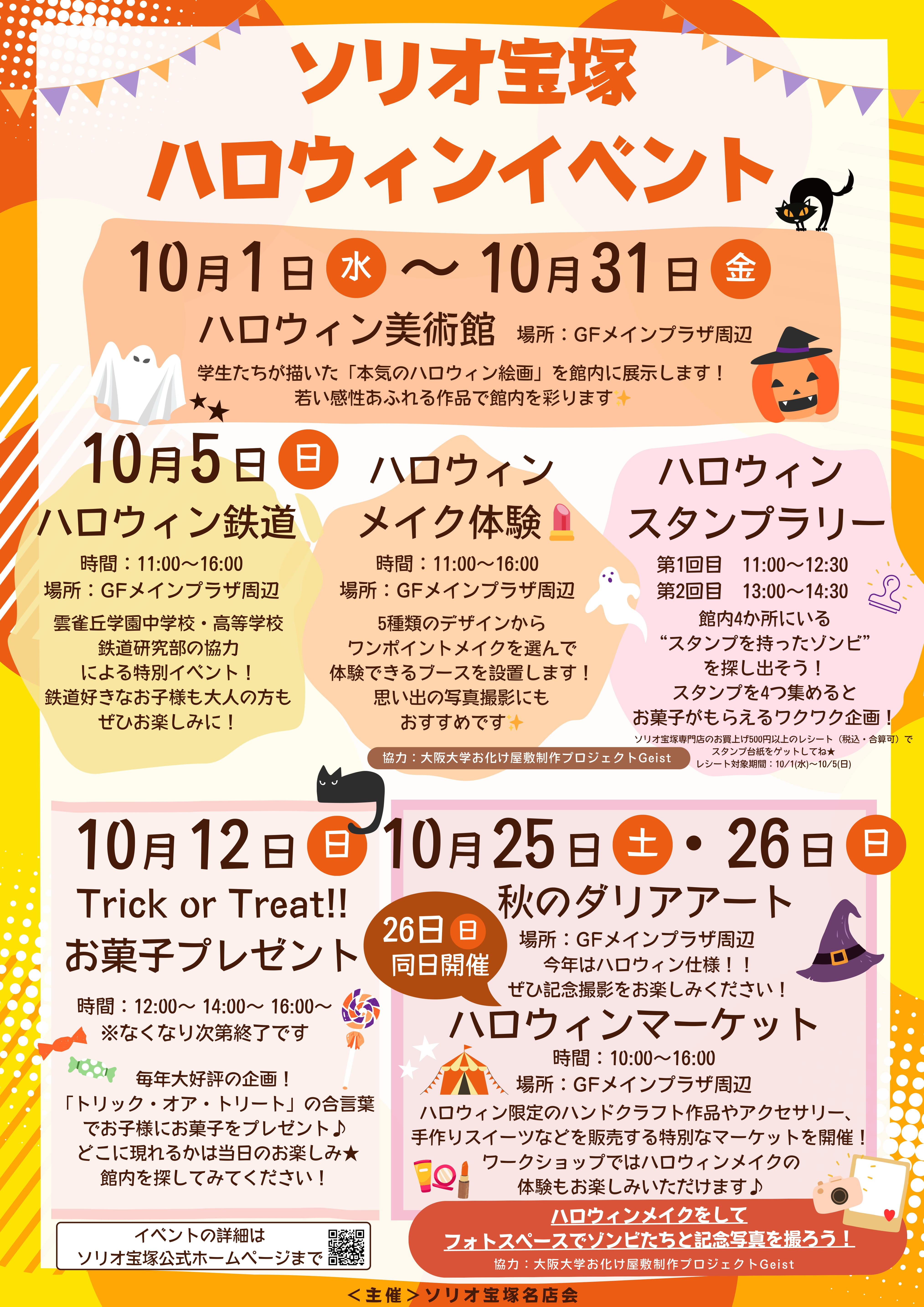 鉄道研究部は、10月5日(日)11~16時に、宝塚駅前の「ソリオ宝塚」で開催されるハロウィーンイベントに参加します。