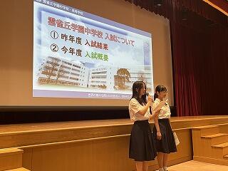 先週土曜日の中学説明会で、中2のOさんとGさんが司会を務めました。