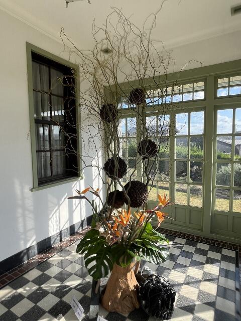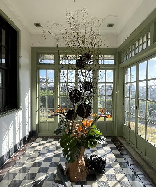 この華展は川西市郷土館で開かれ、生活空間で生け花を展示することができる貴重な機会です。日本家屋と洋館の二つの場所で合計30名以上の方々の作品が展示されました。