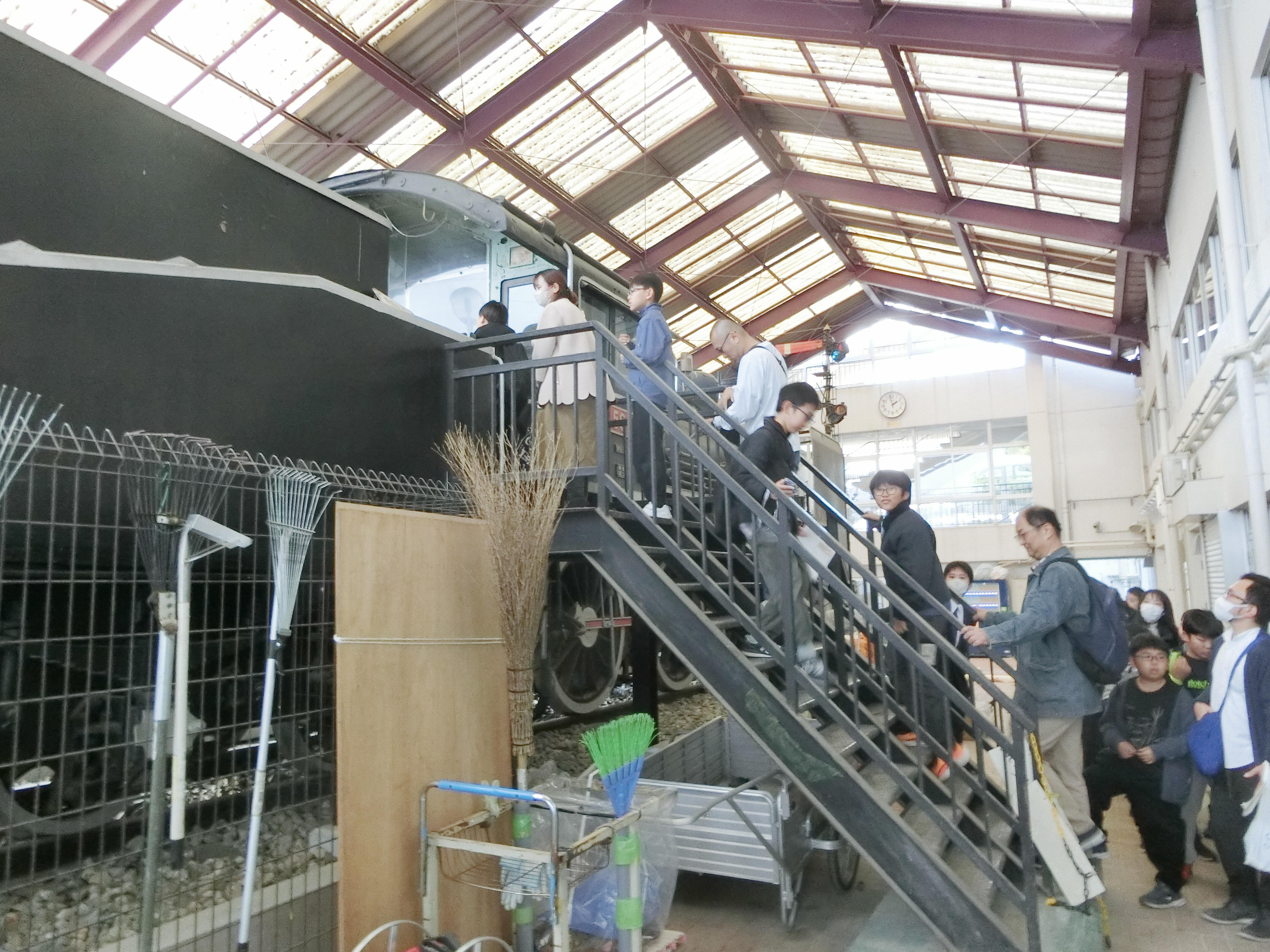 被服教室にて活動紹介のプレゼンを行い、Nゲージで模型運転などで楽しみ、部員と交流を深めた後、希望者は校内を散策し、阪急平井車庫、校内に保存するSL C56-111、鉄道研究部室などを見学しました。部員は、受験生や保護者と積極的に話し、保護者の方からお褒めの言葉をいただきました。