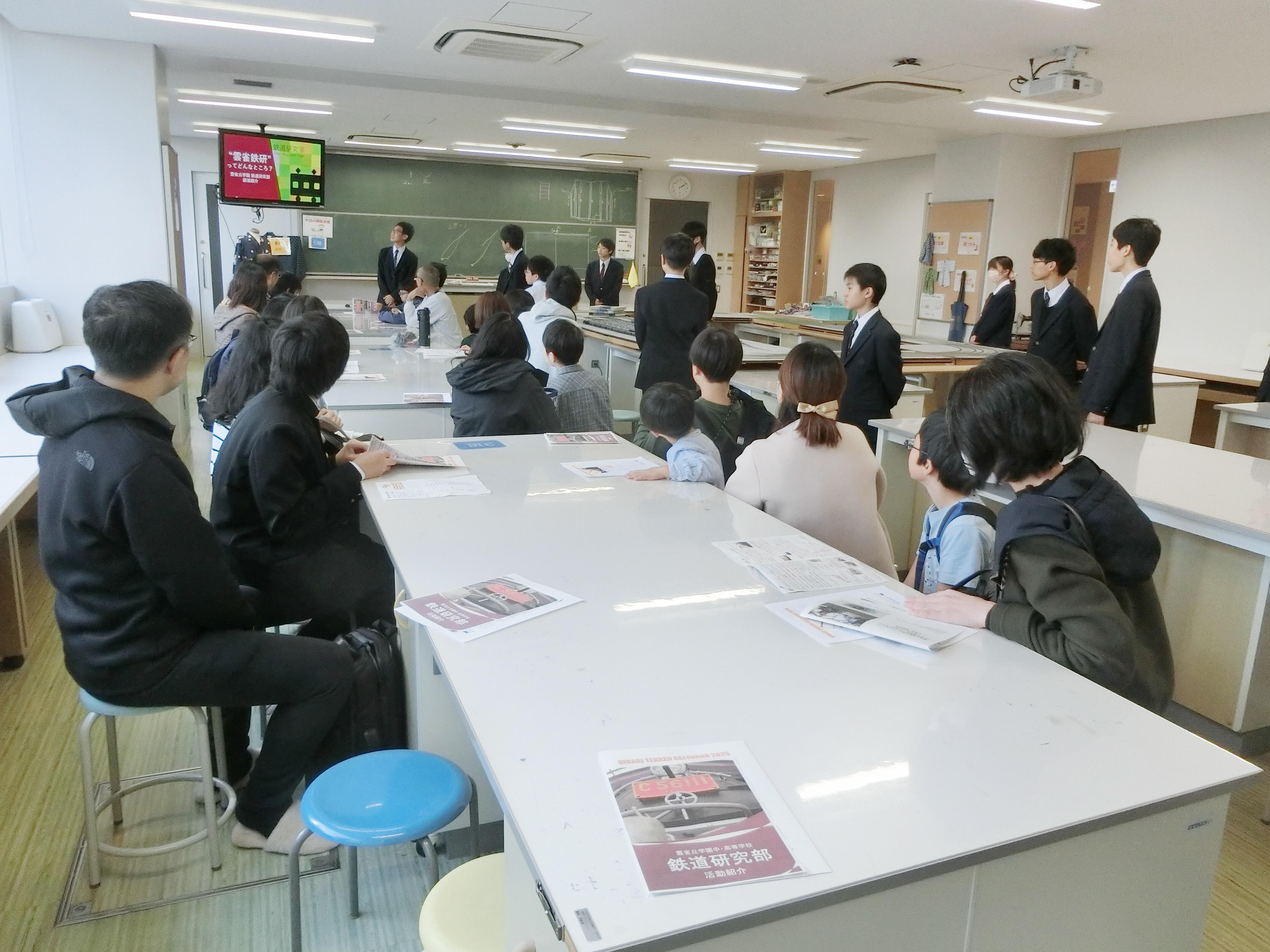 鉄道研究部は、本日11月15日14:00~15:30にクラブ見学会(予約制)を開催しました。今回は13組30名が来校され、中1~高2の部員26名が対応しました。
