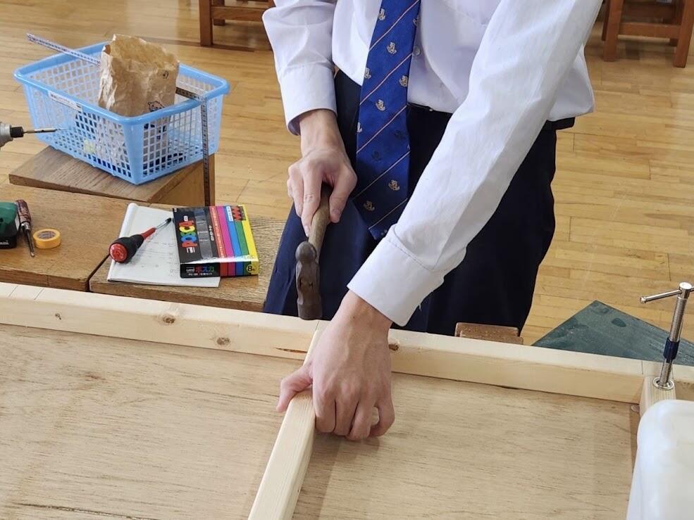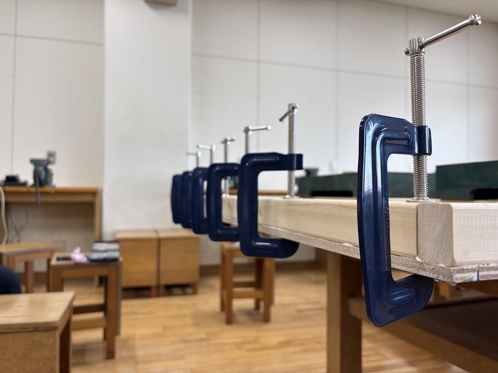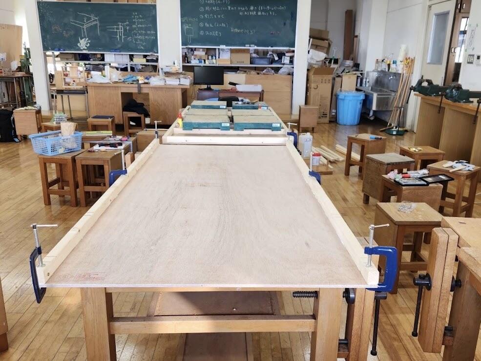 本日は技術教室をお借りして作業を行いました。今日は大ボードの中で一番大きいボードの作成に取り掛かりました。土台を取り付け、ビスをインパクトドライバーで打ち込み、ニスを塗り強化しました。