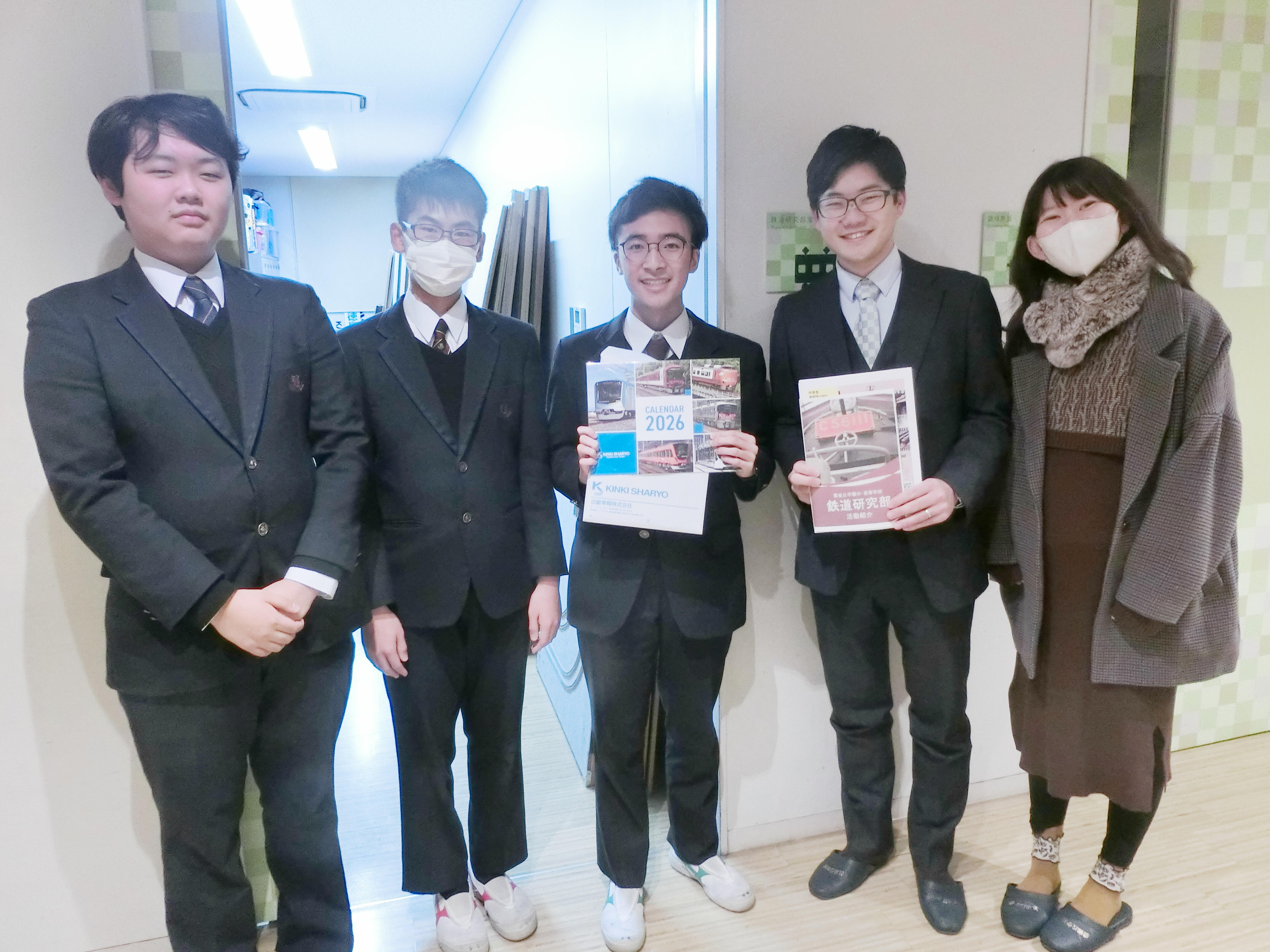 鉄道研究部にOBが来校されました。本校57期生で、2023年秋の巡検で偶然お会いして知り合った縁で、2023年・24年に続き今年も鉄道のカレンダーを頂戴しました。部室に飾り、残りのカレンダーは20日開催する反省会の景品とします。部員たちとも話をし、鉄道の話や最近の生徒の様子などで盛り上がっていました。ご多忙の中、ありがとうございました。