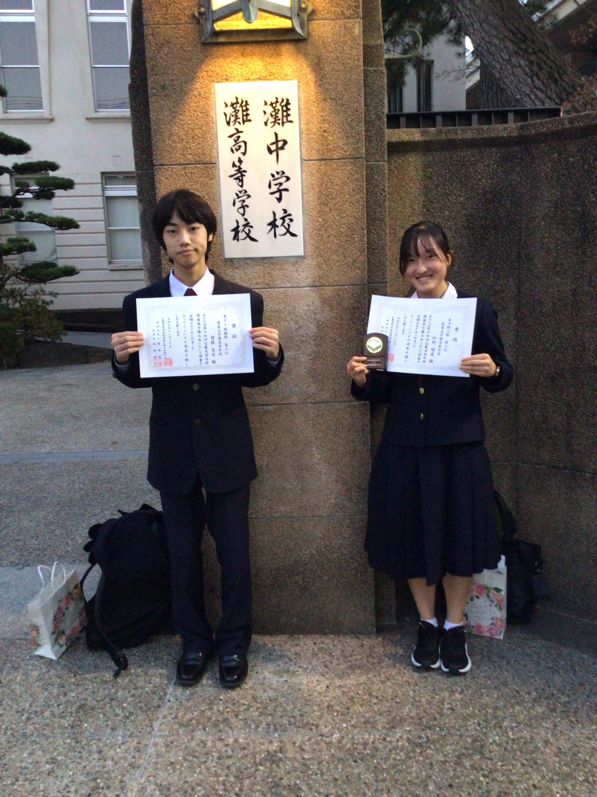雲雀丘学園からは女子個人戦に高2女子(四段)、男子9路盤戦に高1男子(六段)の2名が先日の県大会を勝ち抜き出場しました。