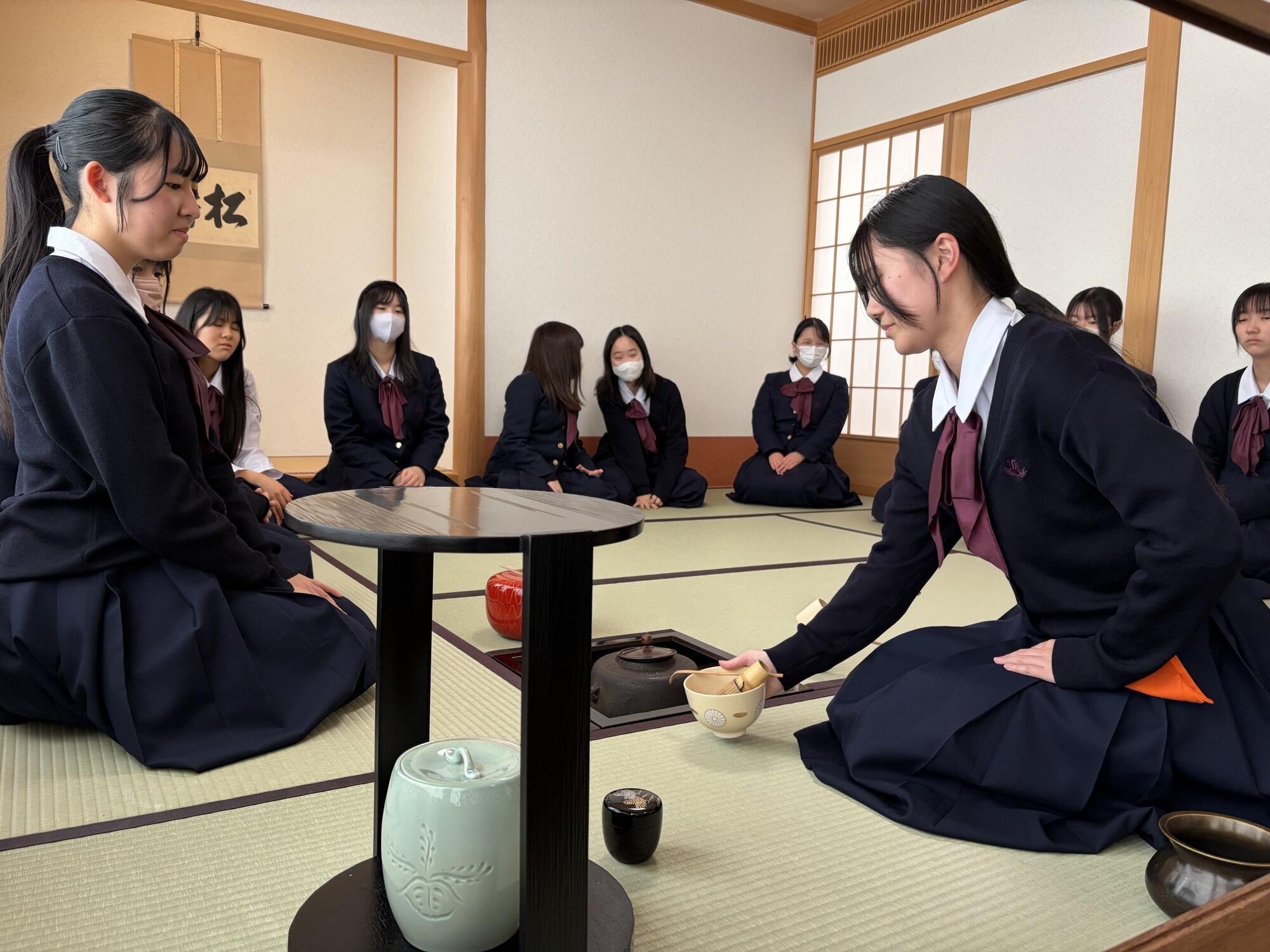 棚の点前を練習する傍らで,冬休みの思い出話に花を咲かせながらお茶とお菓子を楽しみました。