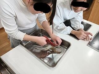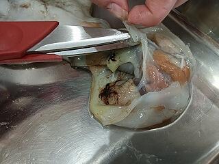 まずキッチンバサミで外套膜を開いていきます。