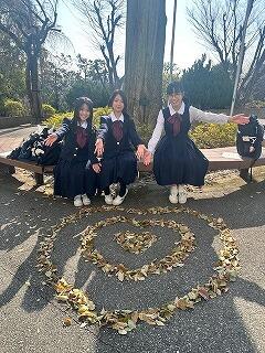早めに集合した中2生。お出迎えの気持ちを木の葉で作ってみました。