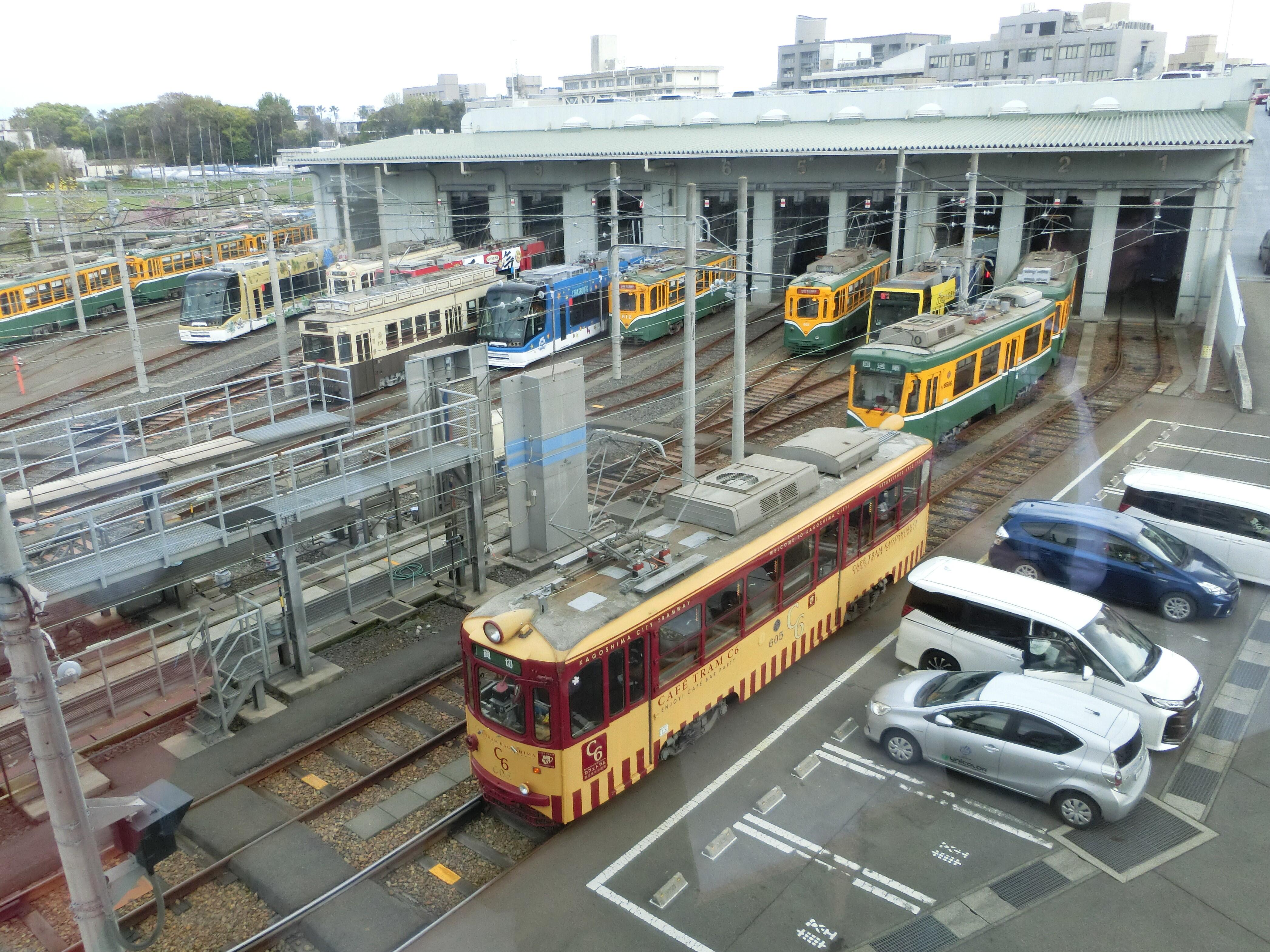 路面電車で鹿児島市交通局へ行き、車庫見学をしました。