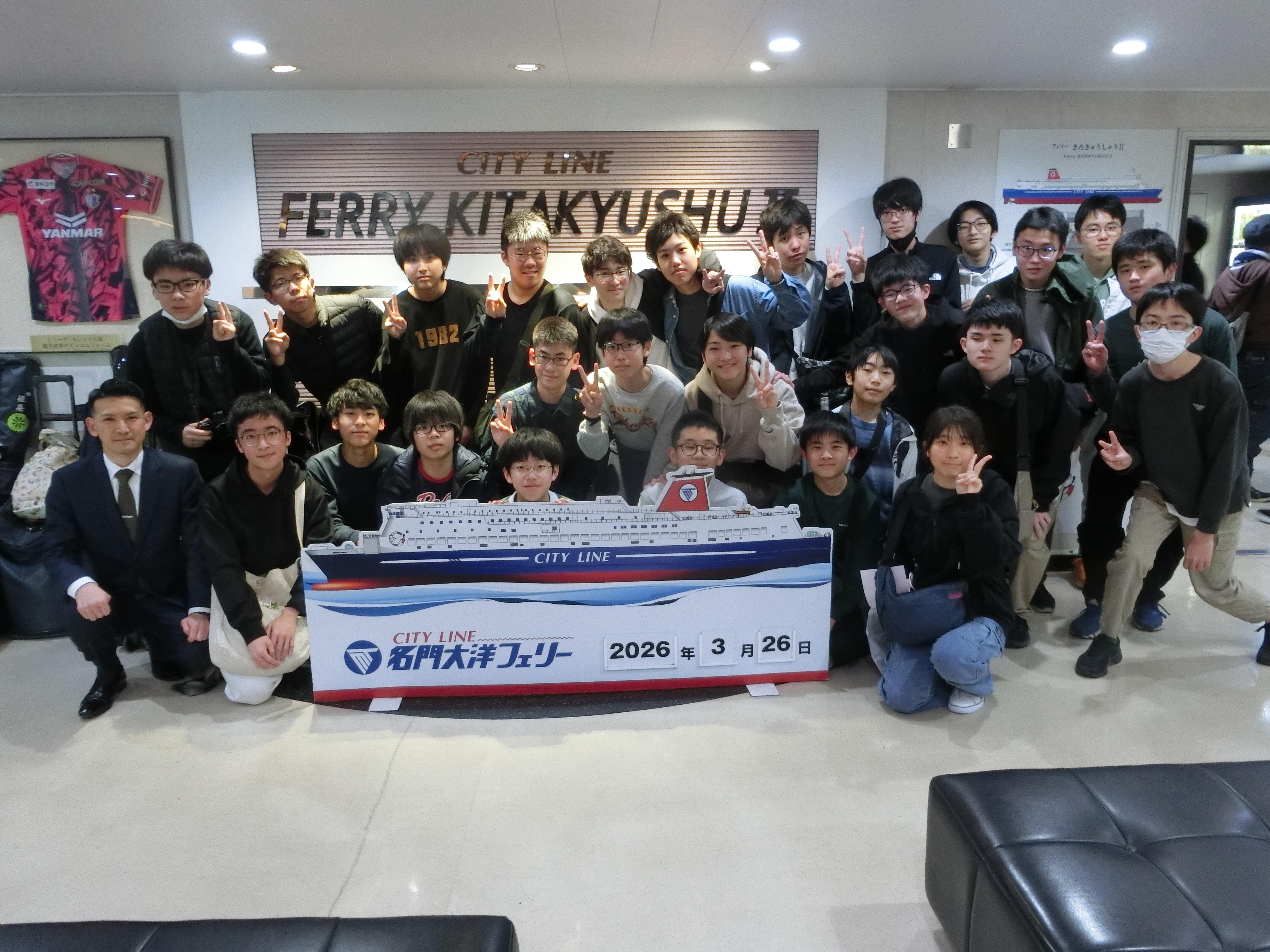 名門大洋フェリーには、52期の鉄道研究部OBが勤務していて、何回かお世話になっています。昨年5月に来校し、部員にも話をしてくれました。今回利用するとのことで、港まで来てくれて、おみやげまでいただき、記念撮影しました(1枚目)。2022年に長崎への夏合宿で乗船して以来の名門大洋フェリーです。