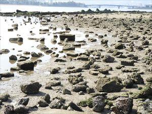 フジツボのたくさん付いた石がゴロゴロ転がっています。