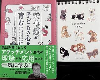 50期生卒業生より本とカレンダーをいただきました。本は『安心感が子どもの心を育む』(東京大学院教授 遠藤俊彦著 小学館)副題にアタッチメント入門講座とあり、保育の場面での具体的な実践を取り上げられているようです。
