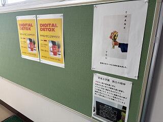 テスト前ということで授業の様子を見に行きました。掲示板に学年の様子が表れています。