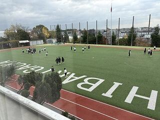 試験中の午後、校庭から楽しげな声が聞こえます。「勉強もしないで遊んでいるのか?」思って窓の外を見ると、いつもより小さい、そして声がかん高い、小学4年生が校庭いっぱいになって遊んでいました。学園小学校4年生の食堂体験でした。少し曇り空で肌寒いですが、4年生には関係ないのでしょう。人工芝で縦に横に思い思いに楽しんでいました。風邪、インフルエンザがはやっていると聞きます。健康に気をつけて、12月を過ごしましょう!