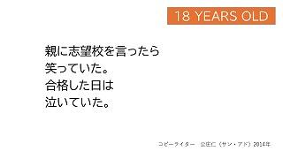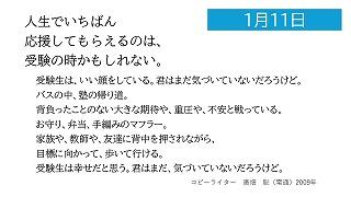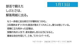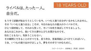 共通テストに向けて壮行会が行われました。私からの激励に最近手にした『365日の広告コピー』『0才から100才の広告コピー』(ライツ社)の2冊からコピーライターの言葉を引用させていただきました。そのスライドです。