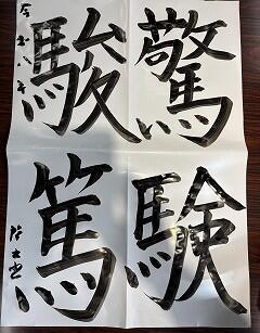 新たな年を迎え、本年もよろしくお願いいたします。みなさんのげんきなあいさつ、笑顔に接し、とてもうれしく思います。書き初めは「馬」のつく漢字を書いてみました。「馬」のつく漢字と調べてみると「馬」を構成に含む漢字は346個もありました。その中から、4つ選んでみました。