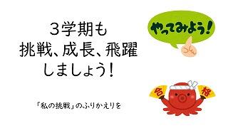 3学期は短い期間ですが、「締めくくりであり、次へのステップアップの学期」です。「健康に気をつけて、挑戦、成長、飛躍しましょう!」みなさんの頑張りを楽しみにしております。