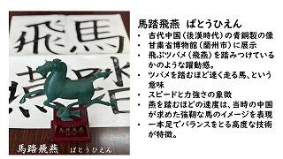 馬踏飛燕 ばとうひえんの像は、中学の師範大学附属校からいただきました。校長室にあります。興味があれば見に来てください。