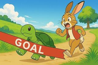 私から「ウサギとカメ」のお話をして、カメはなぜ勝ち目のない競争をしたのだろう?カメの目的・目標は何だったのか?から「目標を定めたら、全力をあげて、必ずやり遂げよう」とお伝えしました。