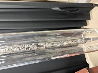 細かなすばらしい作品はもとより、他のお客様に丁寧に上手に説明している姿に感激しました。(写真は刀身彫、彼の作品です)