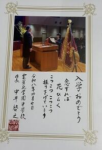 入学式にあたり、出身学校からもたくさんの祝電、お祝いの言葉をいただきました。