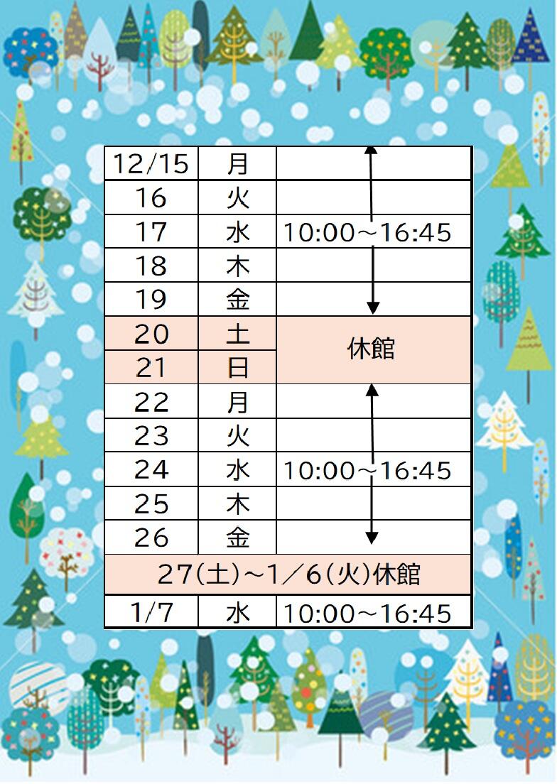 雲雀丘学園中学校・高等学校 English 学校案内 学校長挨拶 運営方針 施設紹介 交通アクセス 教育内容・進路 学習計画 実践的教育 合格実績 キャリア教育 学園生活 学生の一日 行事予定 年間行事 クラブ活動 入試情報 最新入試情報一覧 中・高パンフレット 中学入試 高校入試 学校説明会・公開行事 転入考査 よくある質問 各種手続き 在校生に関する手続き 卒業生に関する手続き アクセス 資料請求 English 学校だより 図書館 冬休みの開館カレンダー 2025/12/19 図書室から 冬休みの開館カレンダーです。通常と開館時間が変更になっています。 < 前の記事 一覧に戻る 学校ブログ 校長通信 学校だより 部活動 中1学年だより(73期生) 中2学年だより(72期生) 中3学年だより(71期生) 高1学年通信(70期生) 高2学年通信(69期生) 高3学年通信(68期生) グローバル・探究 進路の部屋 学園だより トップページ 学校だより 図書館 冬休みの開館カレンダー