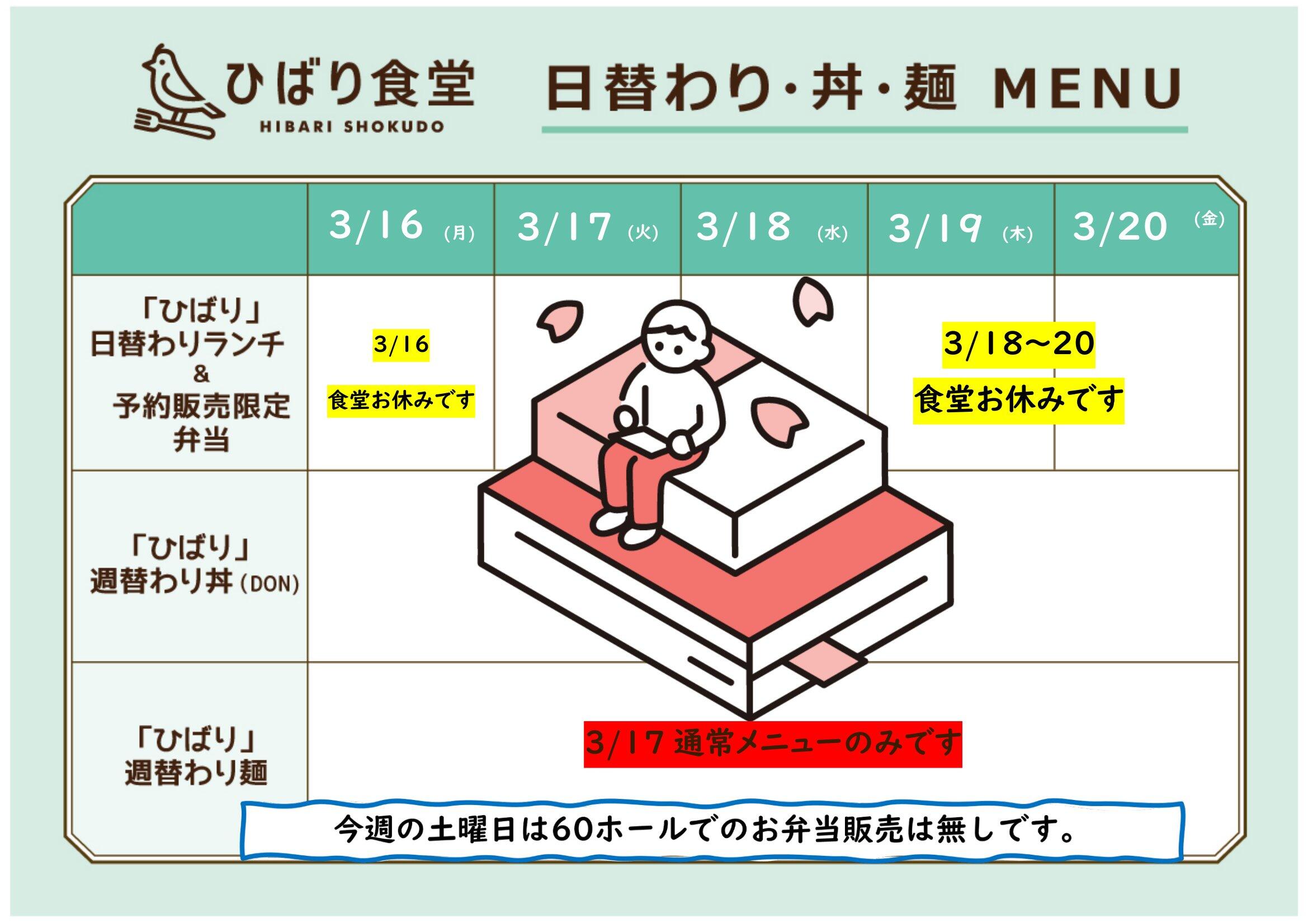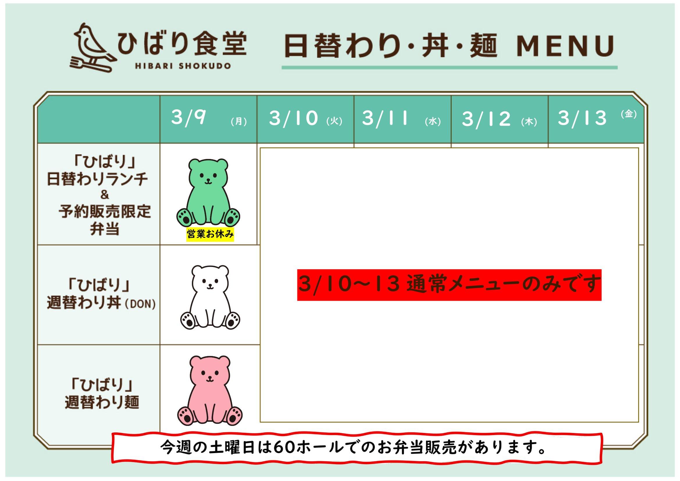 月~金限定のメニュー(日替わり定食500円)・週替わり麺(450円)・丼500円))を紹介します。