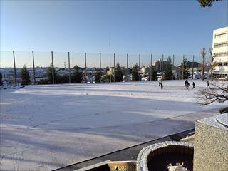 滑って転ばないように慎重に歩いて、学校にたどり着くと、校舎周辺では雪と遊ぶ生徒がちらほら。