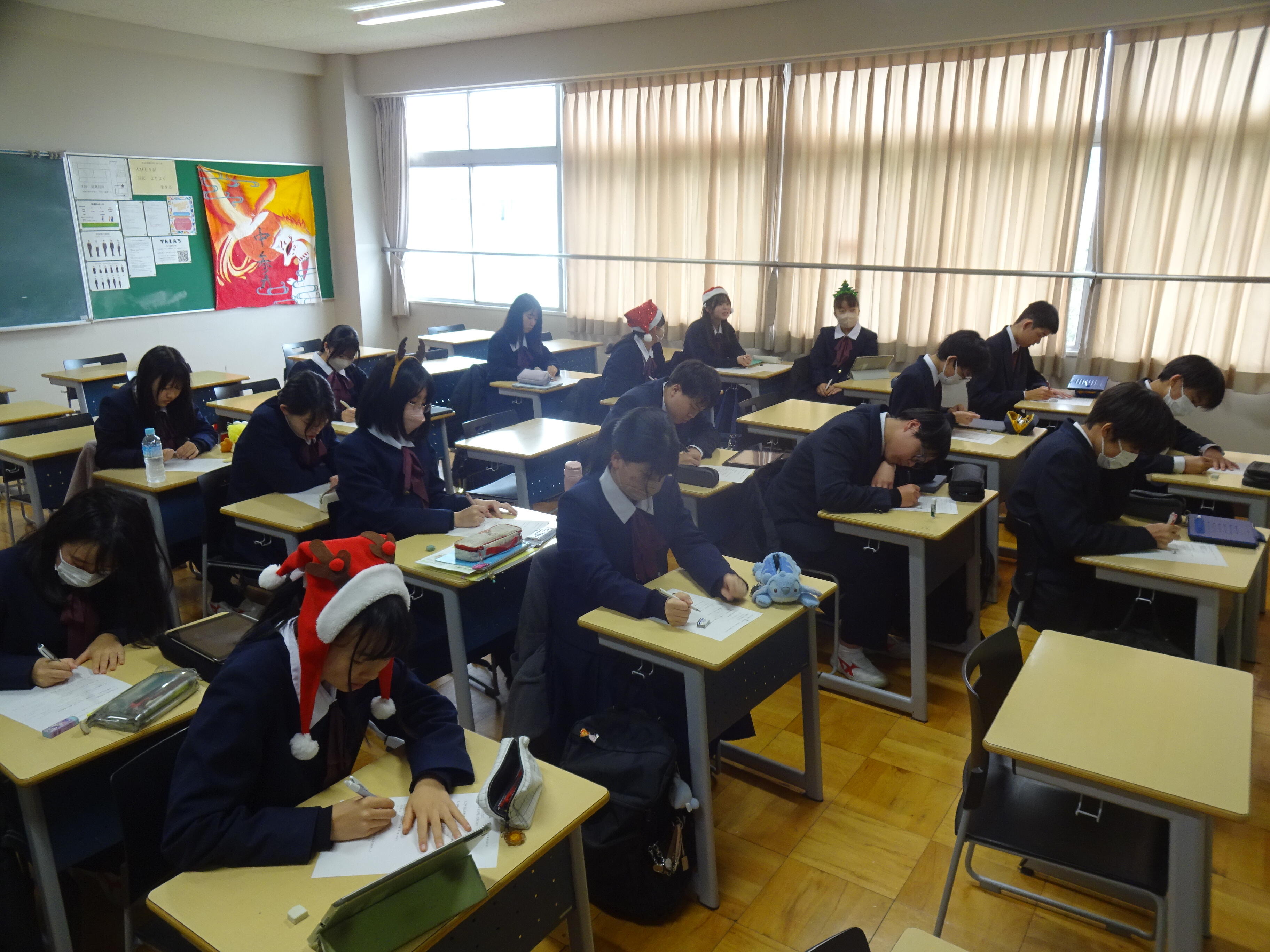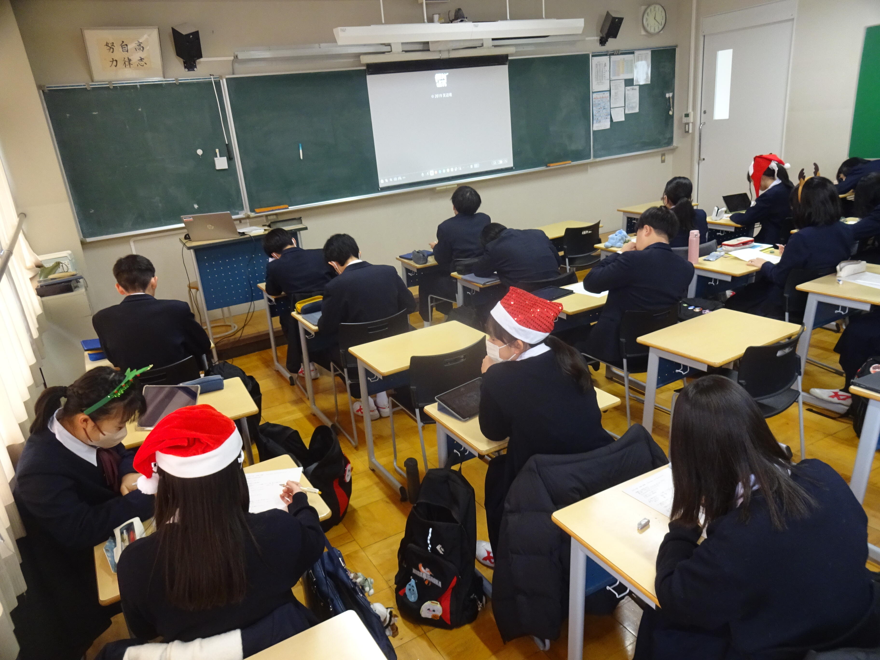 クリスマスイブ、授業中にもサンタやトナカイが現れました。