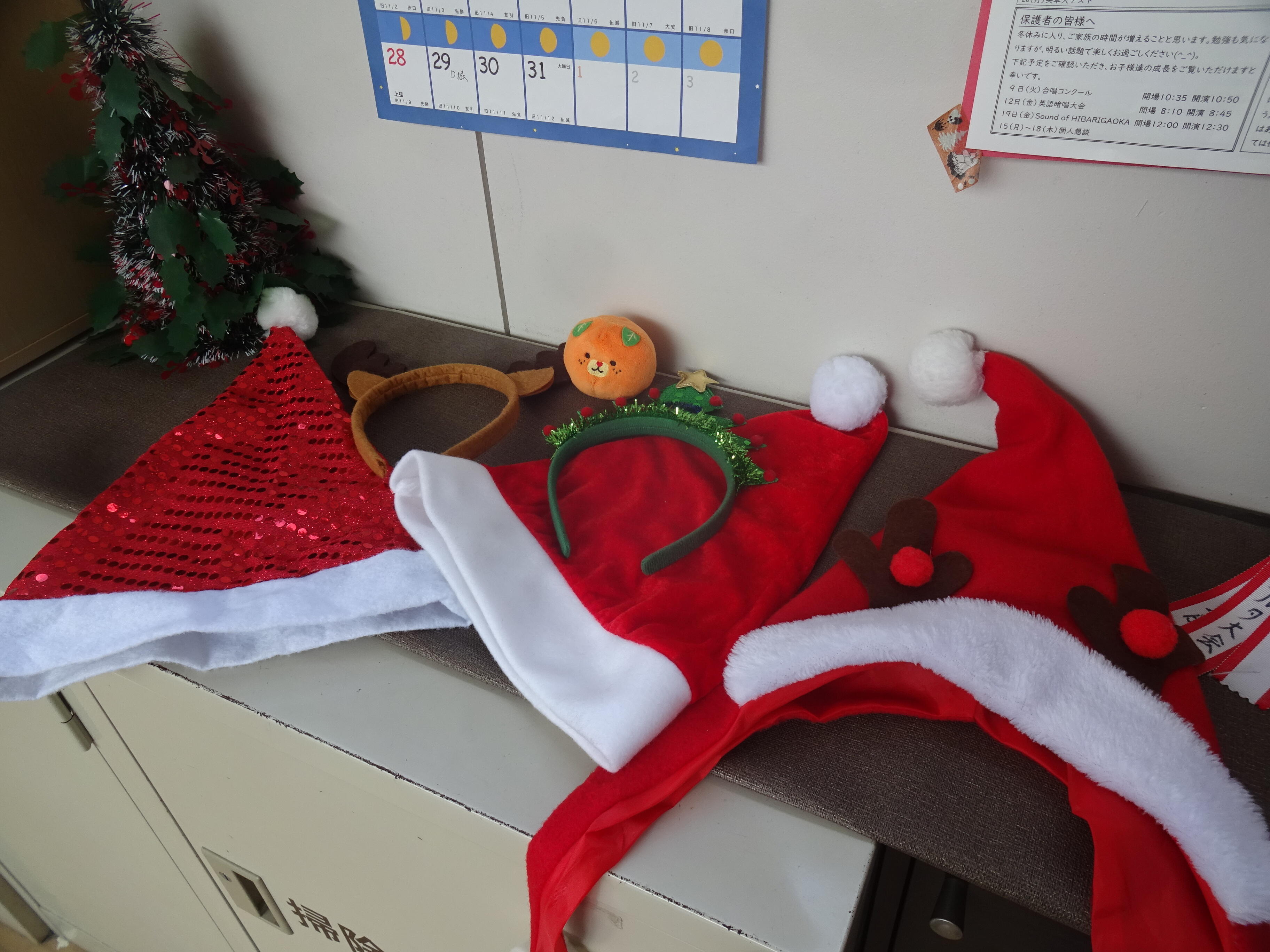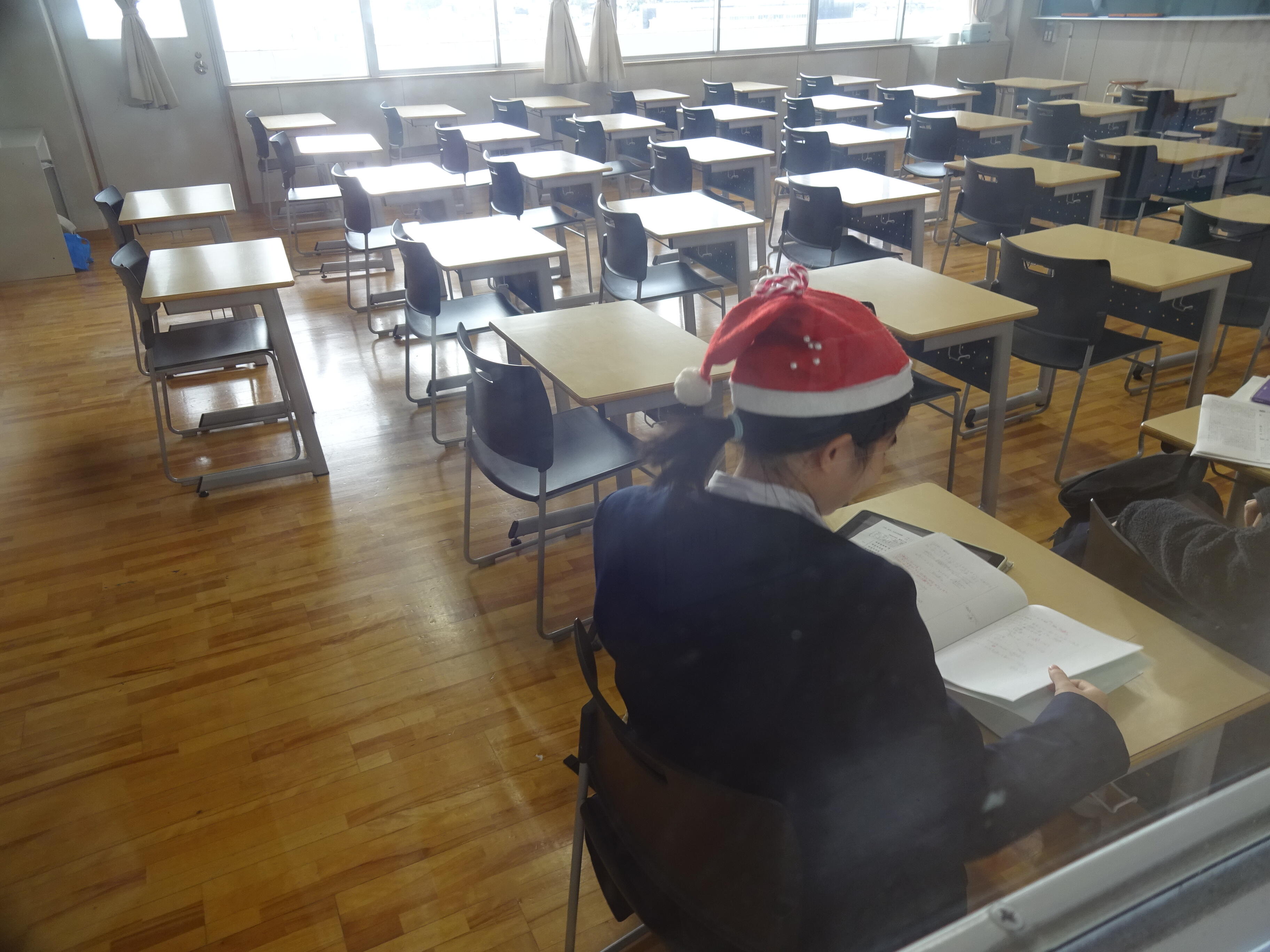 教室でサンタクロースが勉強していました。トナカイになりたい人もどうぞ。