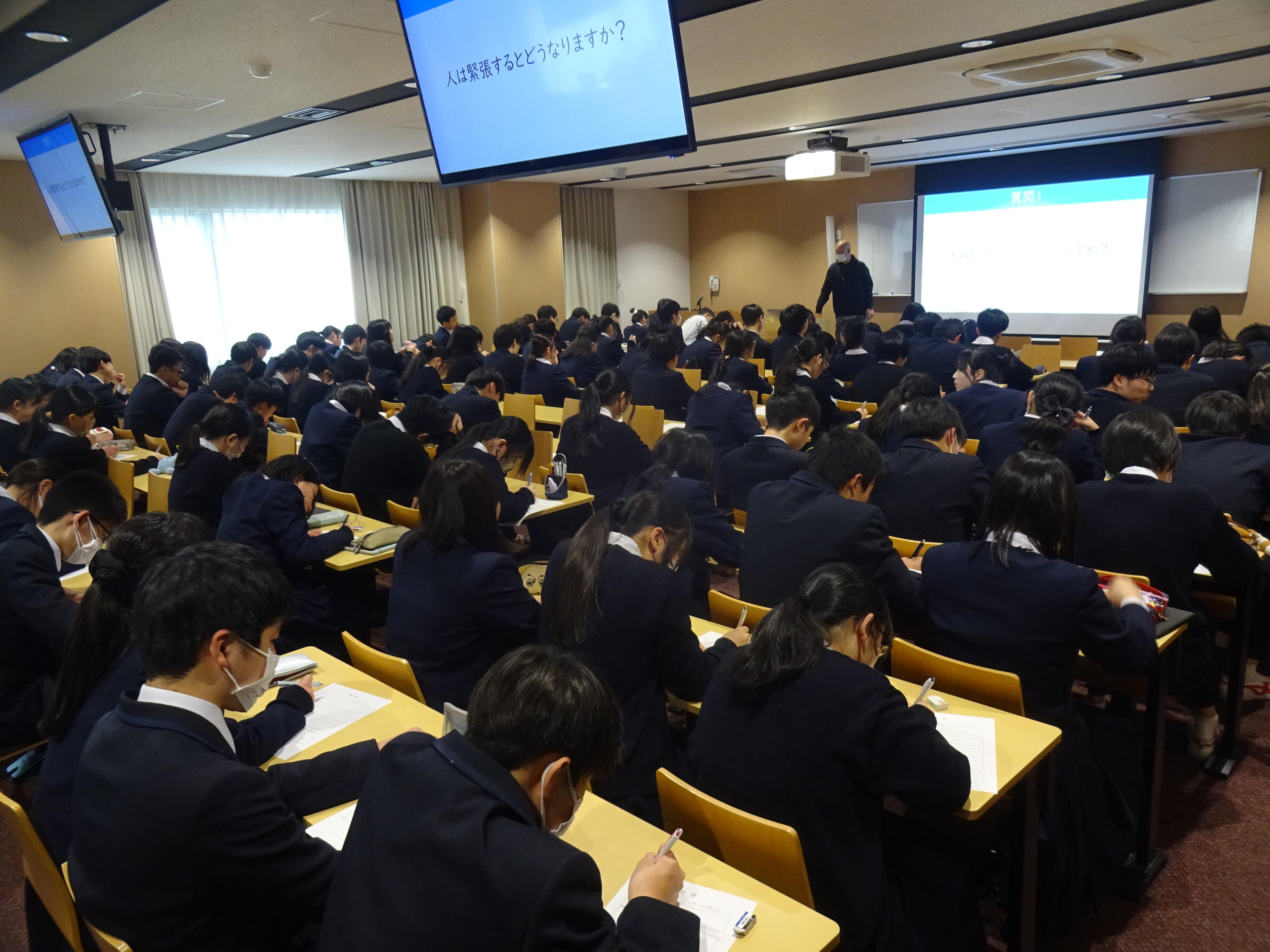 7時間目の道徳はK先生による「思いやり」の授業でした。テーマは思いやりですが、そこに至るまでに様々なドラマがありました。SS(下記参照)の生徒も大活躍してくれて、学ぶものが多かったです。これから期末考査の始まる前などに、自分の人差し指を立ててそれを一点凝視している71期生が想像できます。