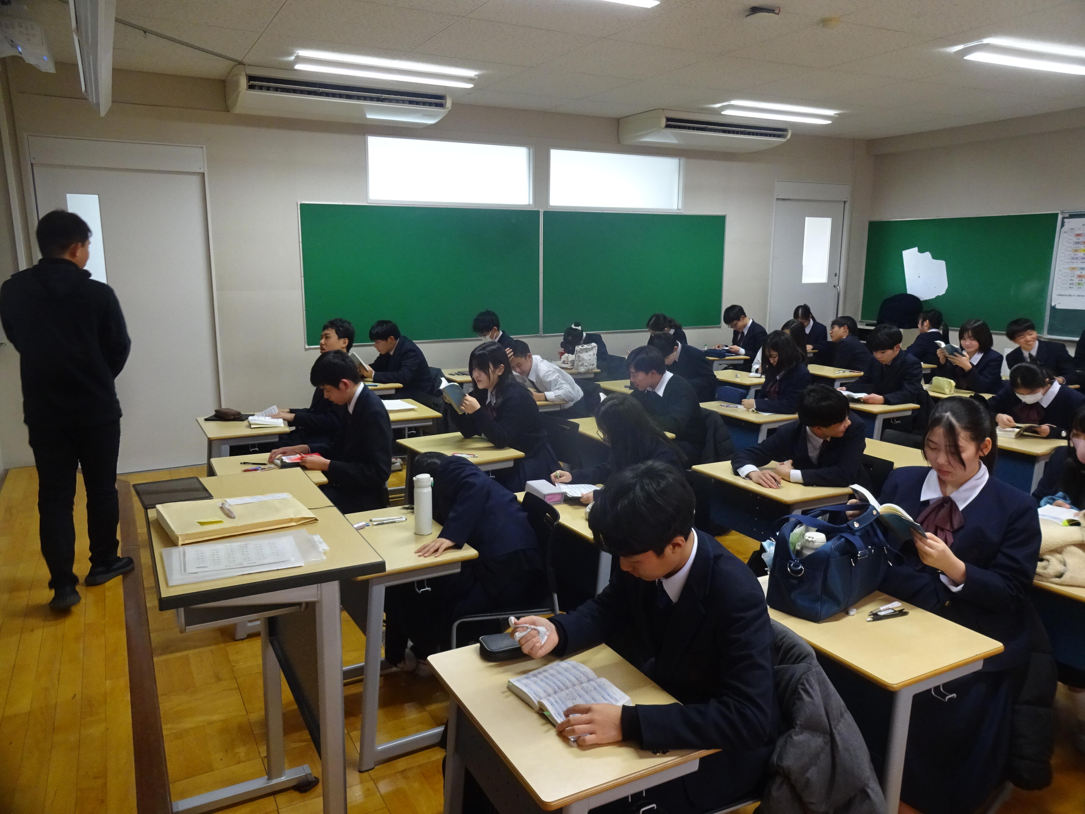 1月26日、中学生としては最後の英単語大テストを行いました。今回の範囲は約300個の英単語、ここから100問が出題されました。みんな朝から単語帳を手放しません。観察していると、勉強の仕方が人によって様々でした。単語帳とにらめっこしている人、お手製の単語帳をめくっている人、赤シートをノートにかざしている人、ぶつぶつつぶやいている人、ひたすら書いている人など、本当に様々でした。もちろんどんな方法でもかまいません。大事なのはその方法が自分に合っているかどうか、そしてその方法で結果が出ているかどうかです。ひとつひとつの自分の行動を見直してみると、意外とおもしろいことがわかります。