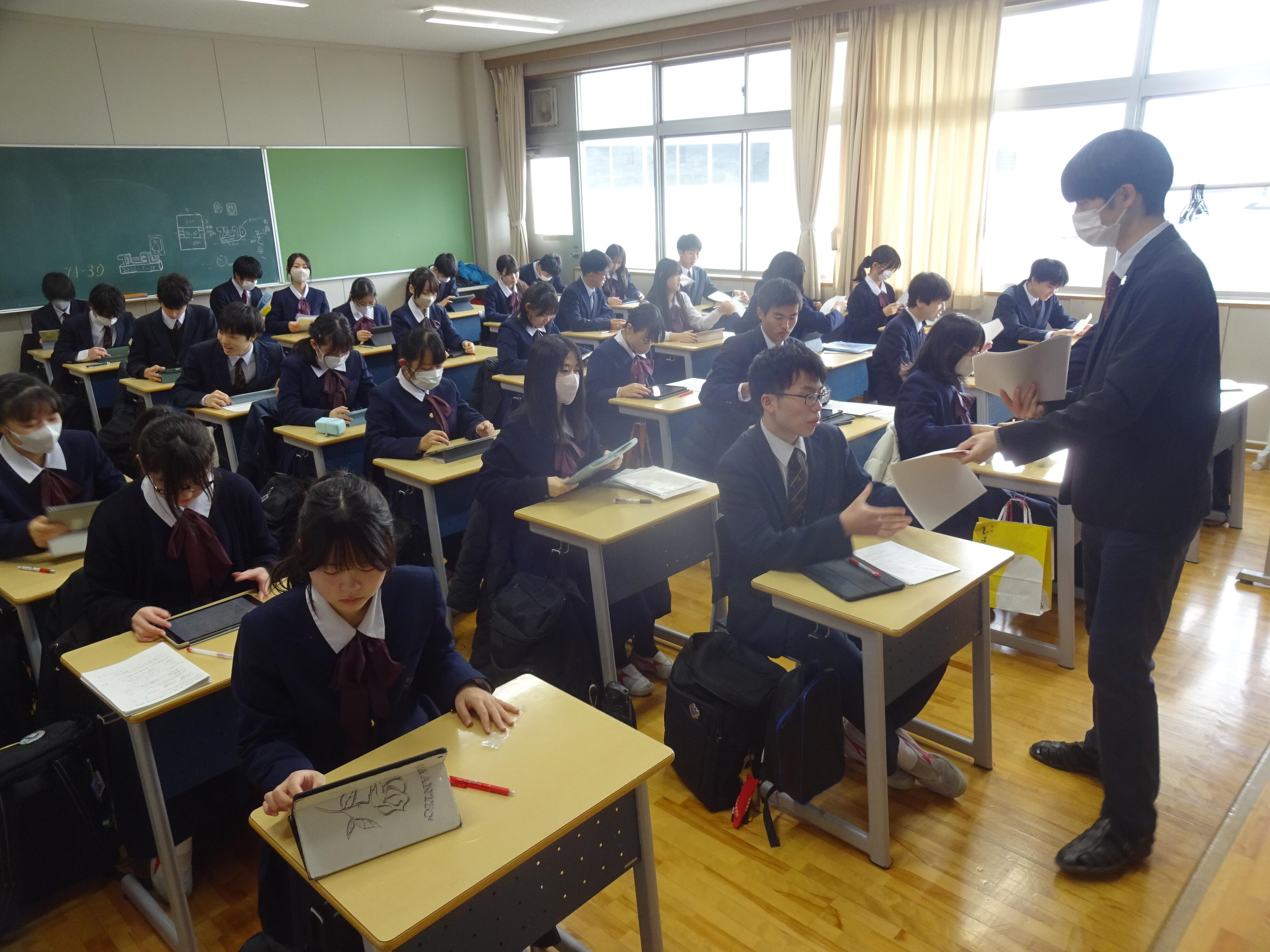 その後、最後の道徳の授業です。まずは生徒部の先生からSNSについてのお話がありました。春休みも含めてスマートフォンに触れる機会が増えるかもしれません。使い方には最大限注意を払ってください。みんなこう言います「そんなつもりじゃなかったのに」「まさかこんなことになるなんて思ってなかった」そうなってからでは取り返しがつきません。