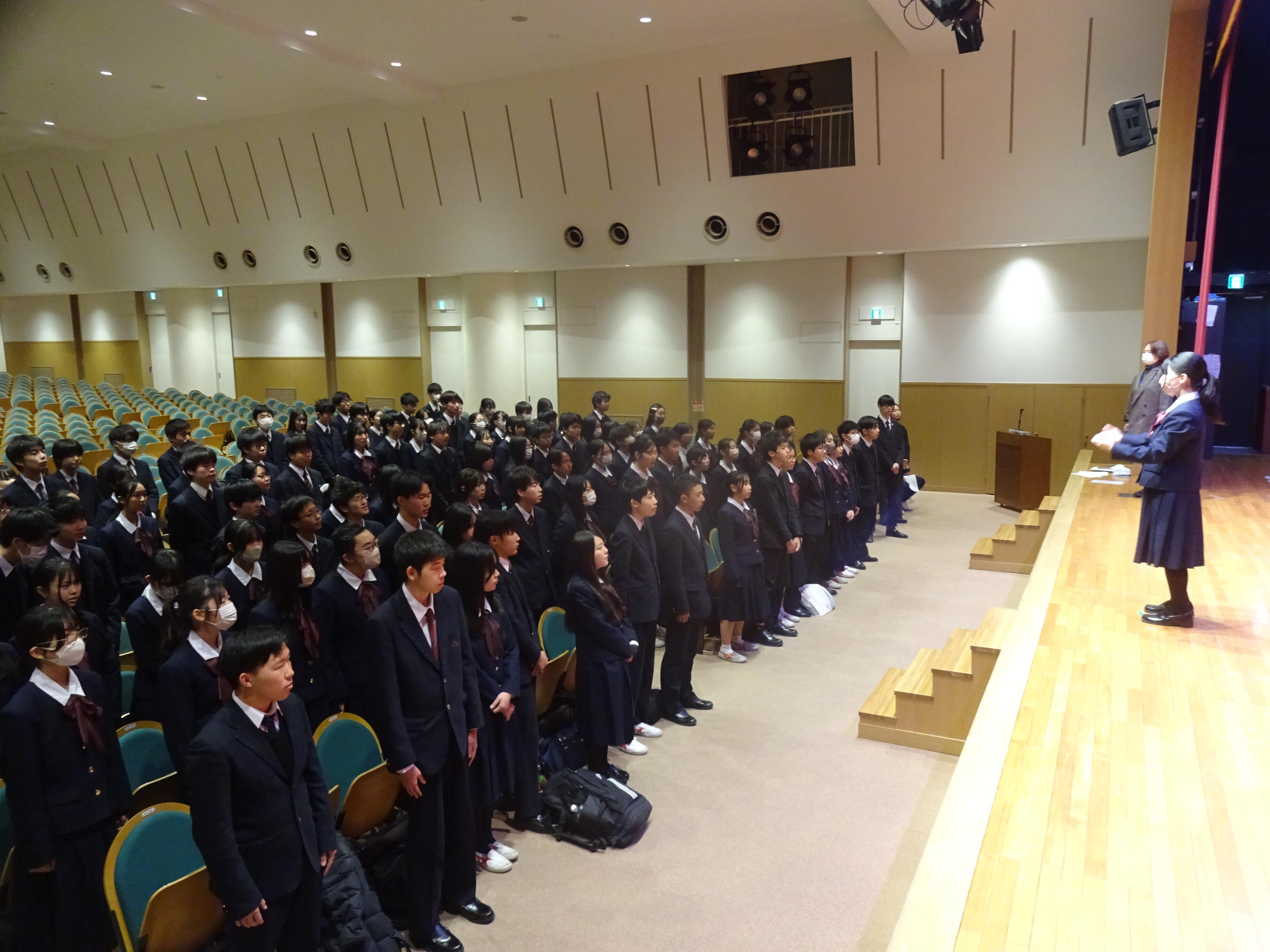 その後、講堂で学年集会を行いました。学年表彰、呼名の練習、学年合唱の練習、そして・・・。